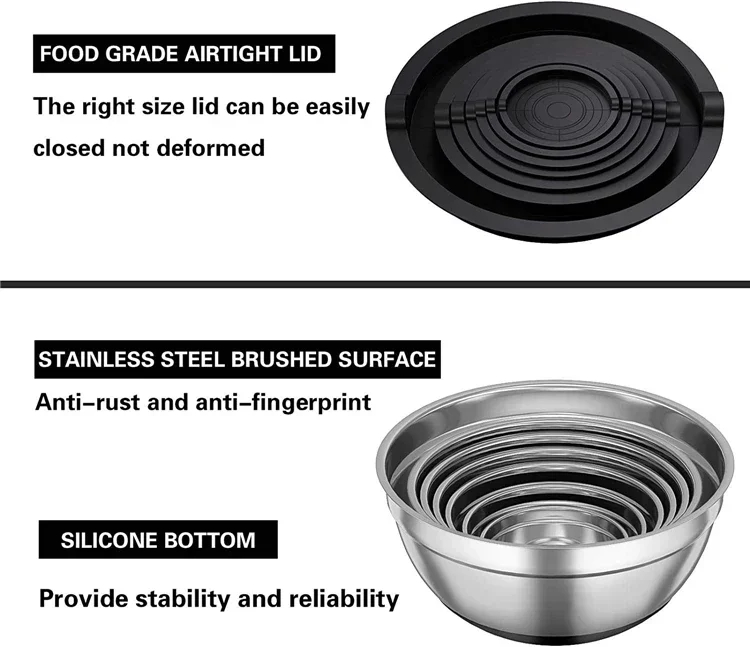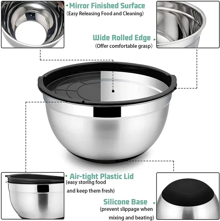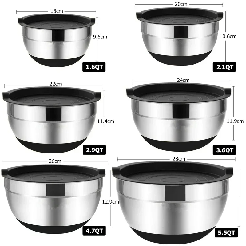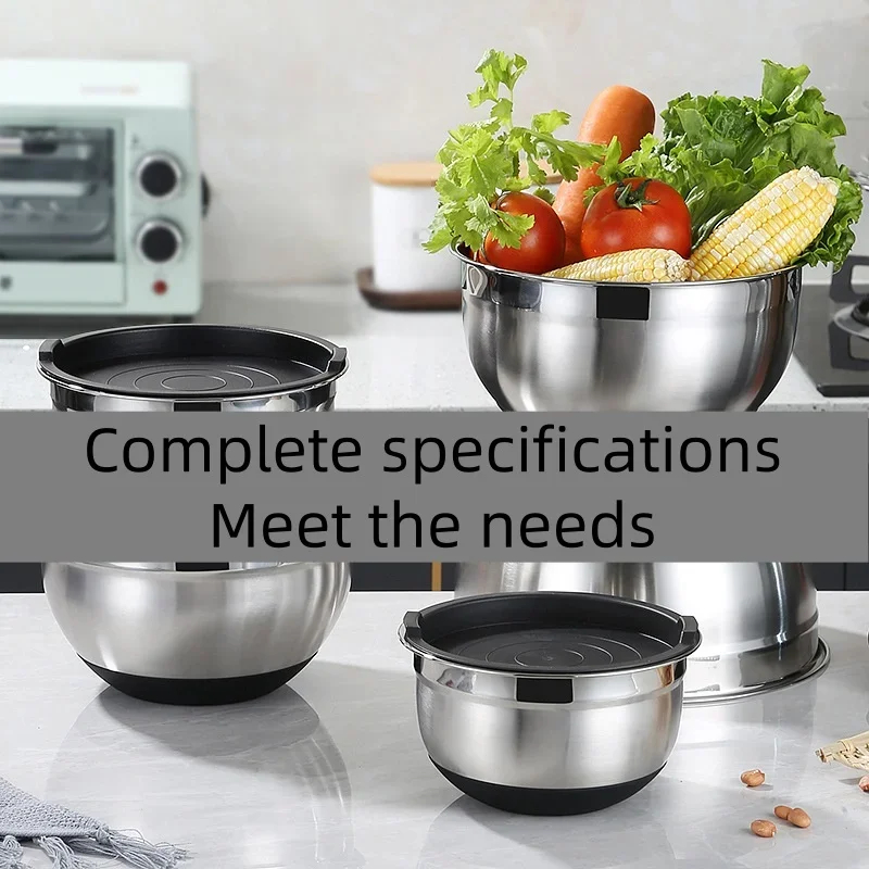 20 reviews for 1/6PCS Silicone Bottom Thickened with Lid Cooking Basin Stainless Steel Egg Beating Basin Salad Mixing Basin Kitchen Baking