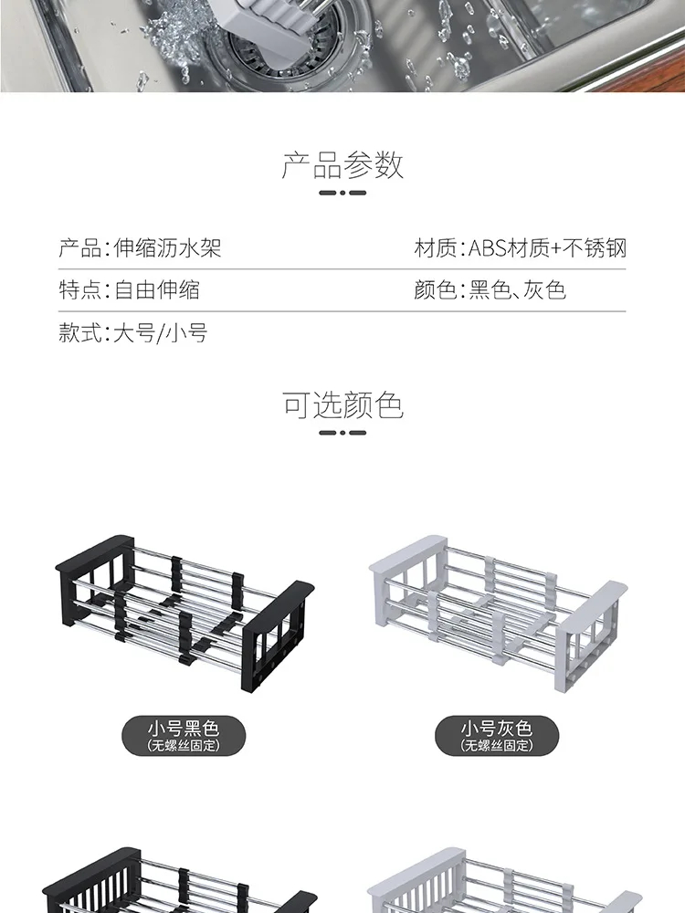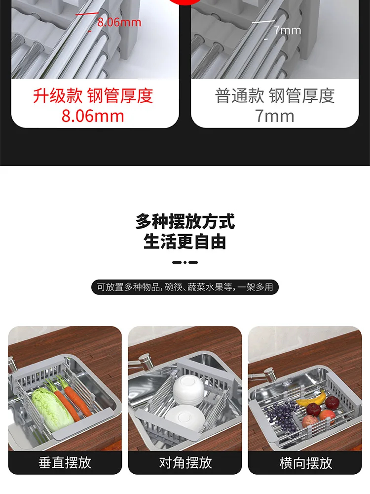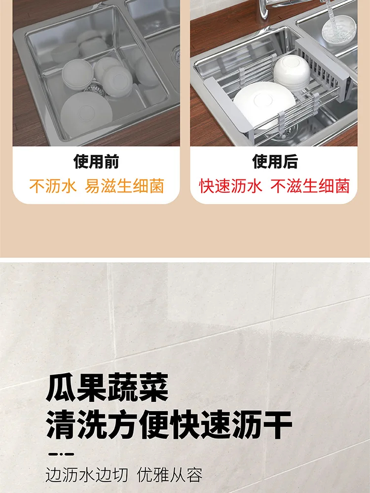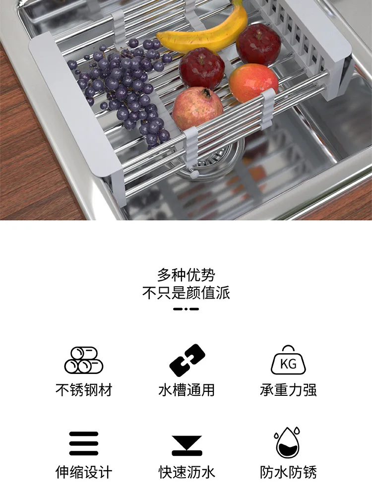 Drain basket bowl rack Kitchen fruit basin storage rack sink retractable sink storage rack