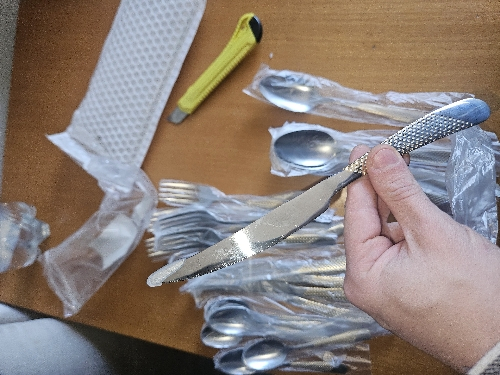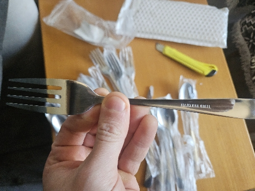 Beautiful and elegant cutlery. They’re not very sturdy, but they seem durable. The knife is the sturdiest item in the set. I haven’t tested the knives’ sharpness yet, but it would just be a matter of sharpening them. All the cutlery has a “stainless steel” notch on the back; I haven’t yet tested whether they rust. The decoration on the base is only on the front of the cutlery, with the exception of the knife. It’s not as shiny as in the photos, but it’s beautiful. They came very well packaged in sturdy packaging. Each cutlery item is individually wrapped, and the knives have protective guards on the tips.