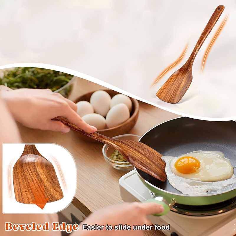 18 reviews for 2Pcs Wooden Spatula Acacia Wood Long Handle Flat Frying Turner Spatulas Nonstick Cooking Utensils Cooking Tools Kitchen Supplies