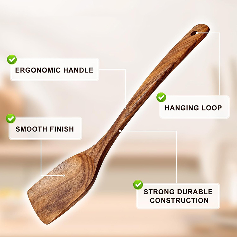 1.The spatula set is made of natural acacia wood material, which is heat-resistant, safe and environmentally friendly, and durable.