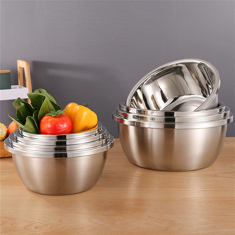 304 Thicken Stainless Steel Salad Bowl Food Mixing Bowls Egg Beater Bowl Fruit Vegetable Basin Kitchen Utensils