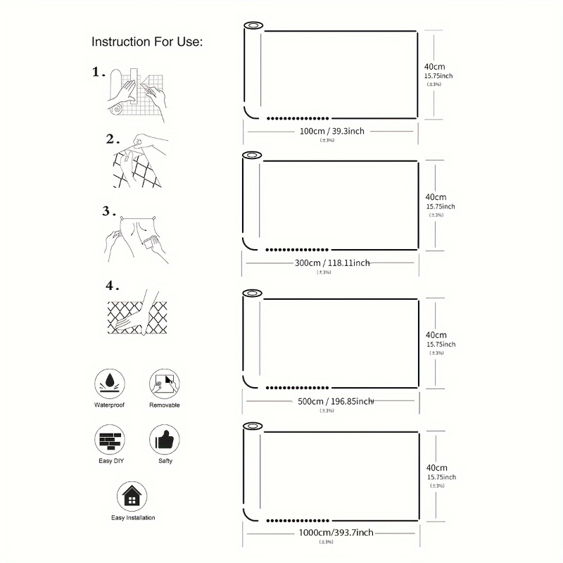40cmx1000cm ,40cmx100cm ,40cmx300cm ,40cmx500cm |