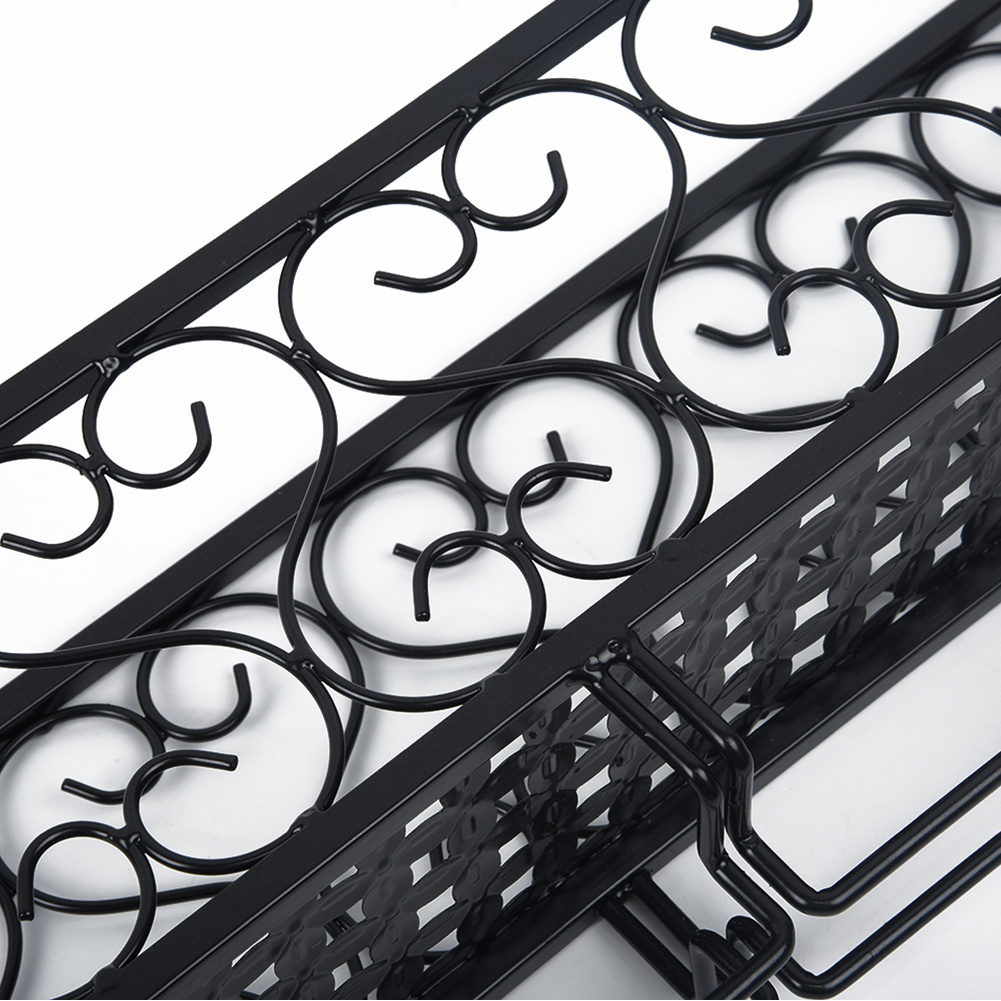 50CM Wall Mounted Metal Wine Glass Rack Drink Bottle Storage Display Shelf, Black