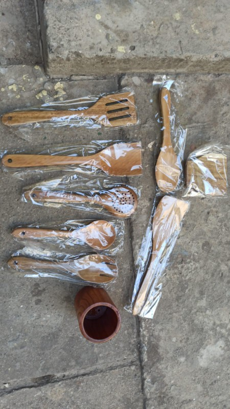 [Wooden Spoon Holder & Spoon Rest]In contrast with others, our wood spoon comes with a spoon rest and a holder so you can easily rest and neatly store your spoons and spatulas on your counters during cooking and after cooking. There is a leak hole at the bottom of the spoon holder, so don’t worry about water accumulation. HEAT-RESISTING :This wooden cooking utensils can withstand safe up to 100 degrees, so you don’t need to worry it will melt or scald your hands. HARD&BEST FOR NONSTICK PAN:Teak wood is close-grained with high organic oil which is known for being one of the hardest. You don’t have to worry about it falling on the ground and breaking or scratching;This durable teak wooden spoon can prevent expensive non-stick pans from scratch and damage. [9-Piece Kitchen Utensils Set]A complete wood kitchen utensils that features all the essential cooking tools including a flat spatula, fried spatula, slotted spatula, kitchen utensil holder, spoons rest, strainer spoon, salad fork, salad spoon, mixing spoon. Covers all your kitchen needs from stirring to cooking. color:Wood color Material:wooden Package Contents: 9 x Wooden Spoons Only the above package content, other products are not included. Note: Light reflection and different displays may cause the color of the item in the picture a little different from the real thing. The measurement allowed error is +/- 1-3cm.