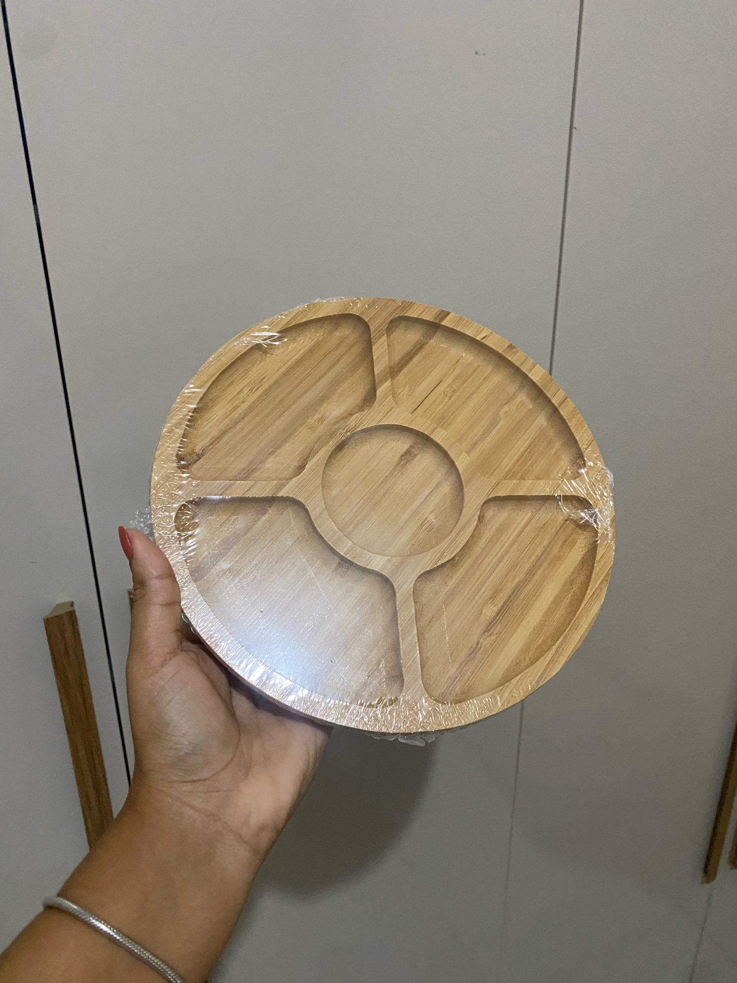 6 reviews for Leeseph Bamboo Round 5 Compartment Serving Tray, Ideal for Snacks, Fruits, Nuts, Wooden Plate with Dividers for Party Platters