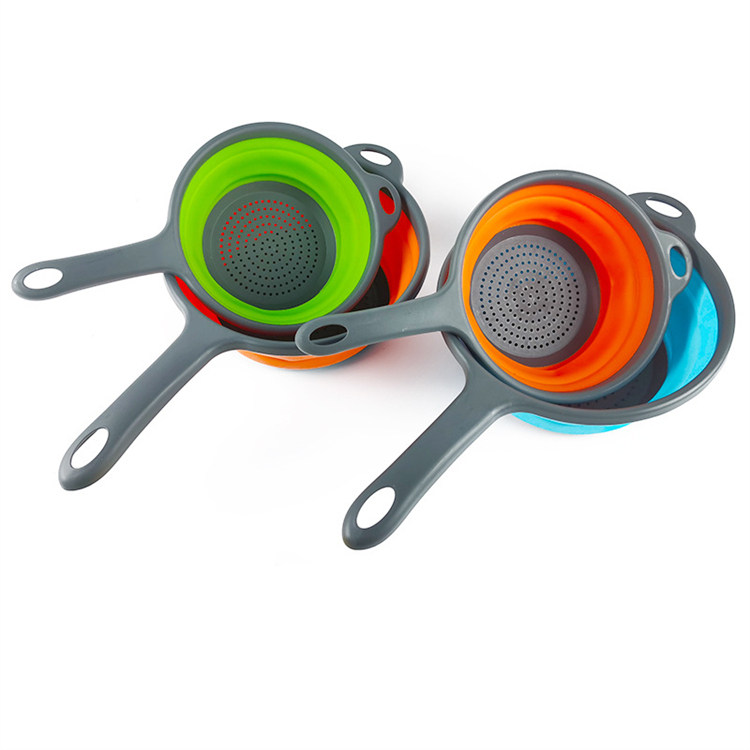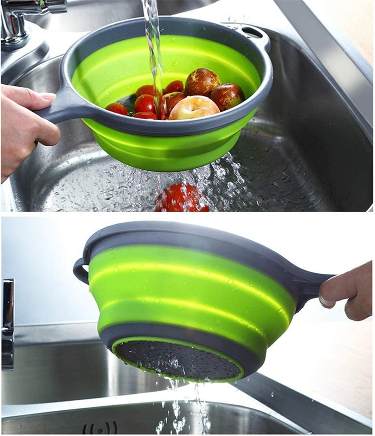 LMETJMA Silicone Collapsible Colander with Handle Kitchen Folding Strainer Colander for Draining Pasta Vegetable Fruit JT111