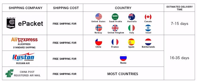 For wholesale,we will offer discount or free express shipping which only takes 3-7 days to arrive.